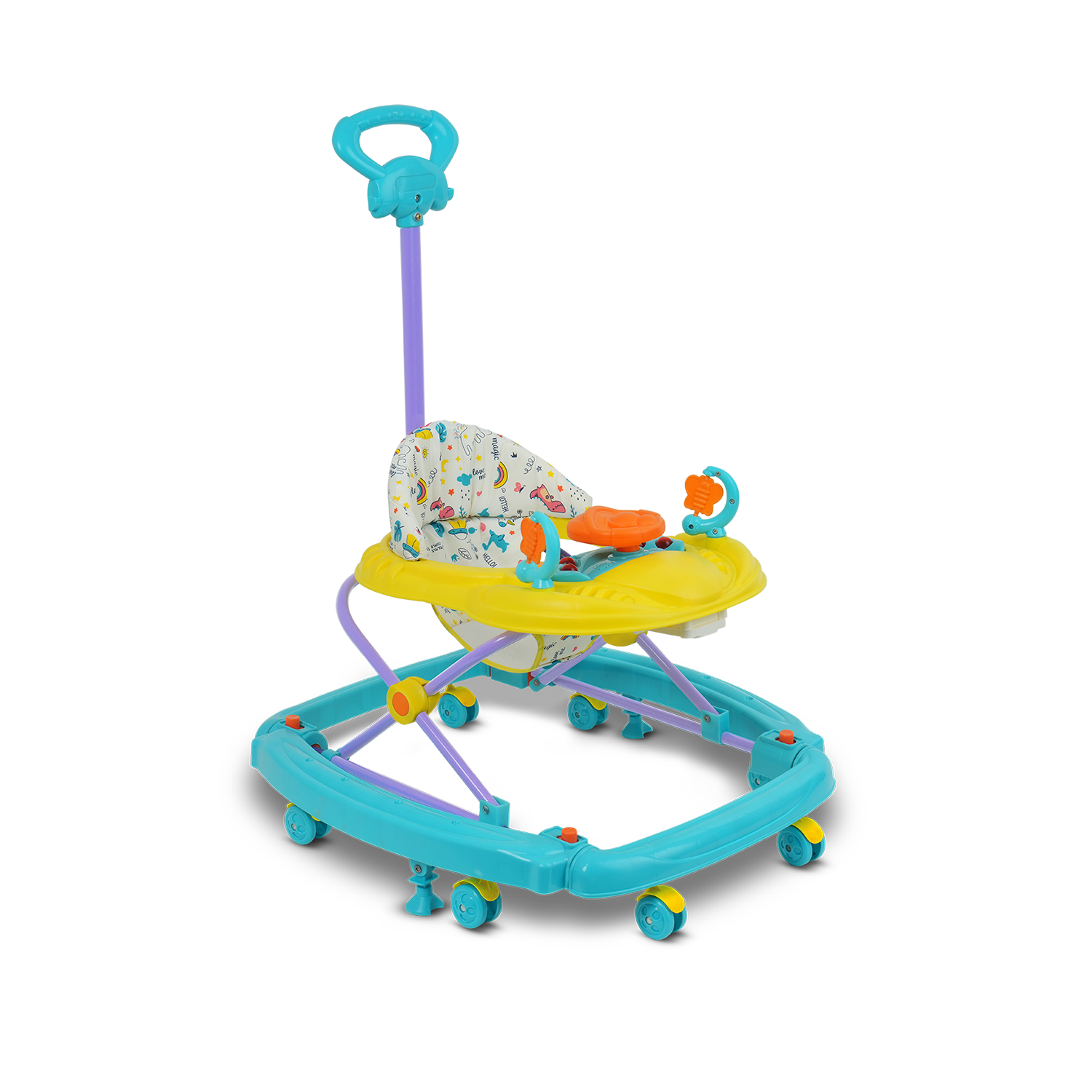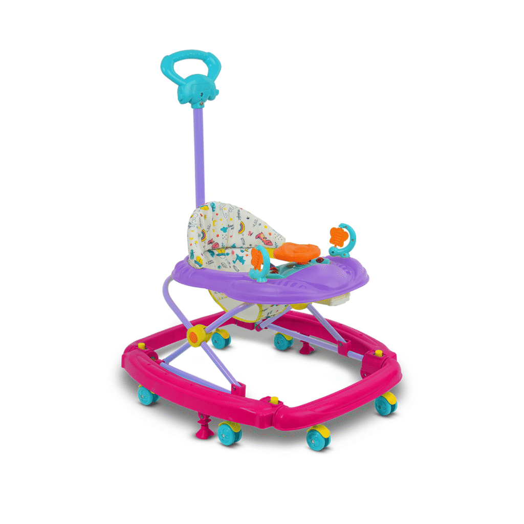 Support your baby’s first steps with the Brooks 2 in 1 Baby Walker , thoughtfully designed to combine safety, comfort, and developmental play. With its sturdy frame, vibrant colors, and interactive toy panel, this walker helps little ones build confidence as they learn to walk, explore, and strengthen their motor skills. This walker features a stable wide base, multi-directional wheels, and a soft cushioned seat, ensuring secure movement and comfortable support for early walkers. The detachable push handle allows parents to guide their child safely, while the engaging toy tray keeps babies entertained with sensory-rich activities.