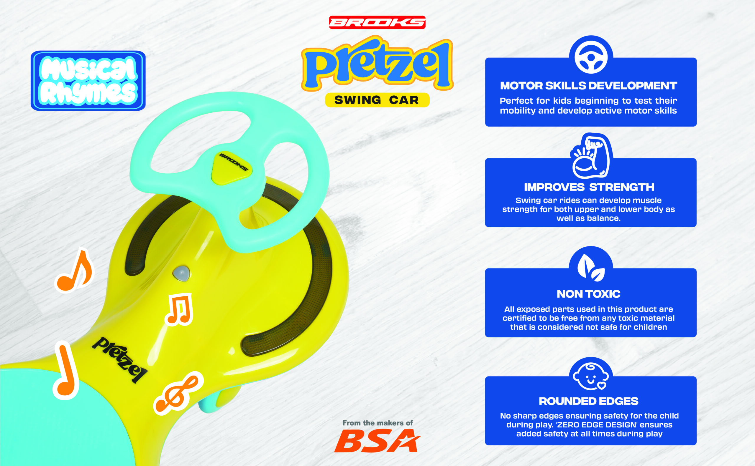 Get ready for endless indoor adventures with the Pretzel Swing Car! Specifically designed for kids, this sleek and ergonomic ride-on toy is a must-have for any playtime.